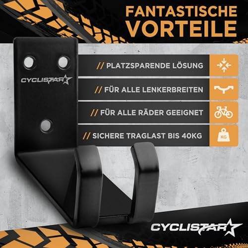 Unsere Wandhalterung für Fahrräder überzeugt durch ihre robuste Bauweise aus massivem Stahl. Der verwendete Stahl ist nicht nur extrem stabil, sondern auch korrosions- und rostbeständig. Dies garantiert eine außergewöhnlich lange Lebensdauer – ideal für alle Fahrradliebhaber, die Wert auf Qualität legen. Dank unseres CYCLISTAR Know-Hows bieten wir Ihnen eine extra langlebige Stabilität, die Ihre Räder sicher und geschützt aufbewahrt.