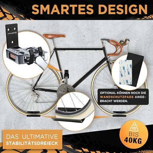 Robuste Fahrrad Wandhalterung bis 40kg – Ideal für MTB, Rennrad & E-Bike – inkl. 2x Stützwinkel zur sicheren Aufhängung